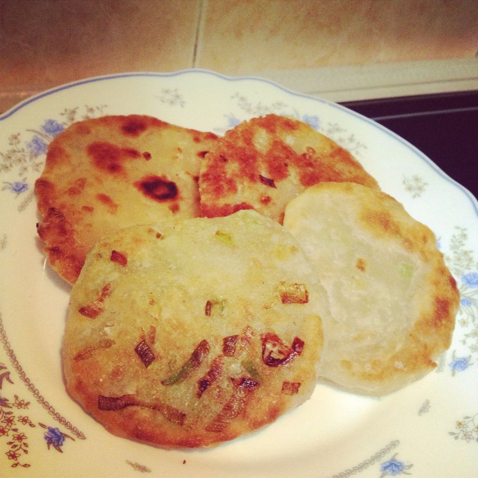 Now you can enjoy your scallion pancakes! :D Eat it while its HOT. You can eat it alone or with light soysauce etc. Hope you like it :D
