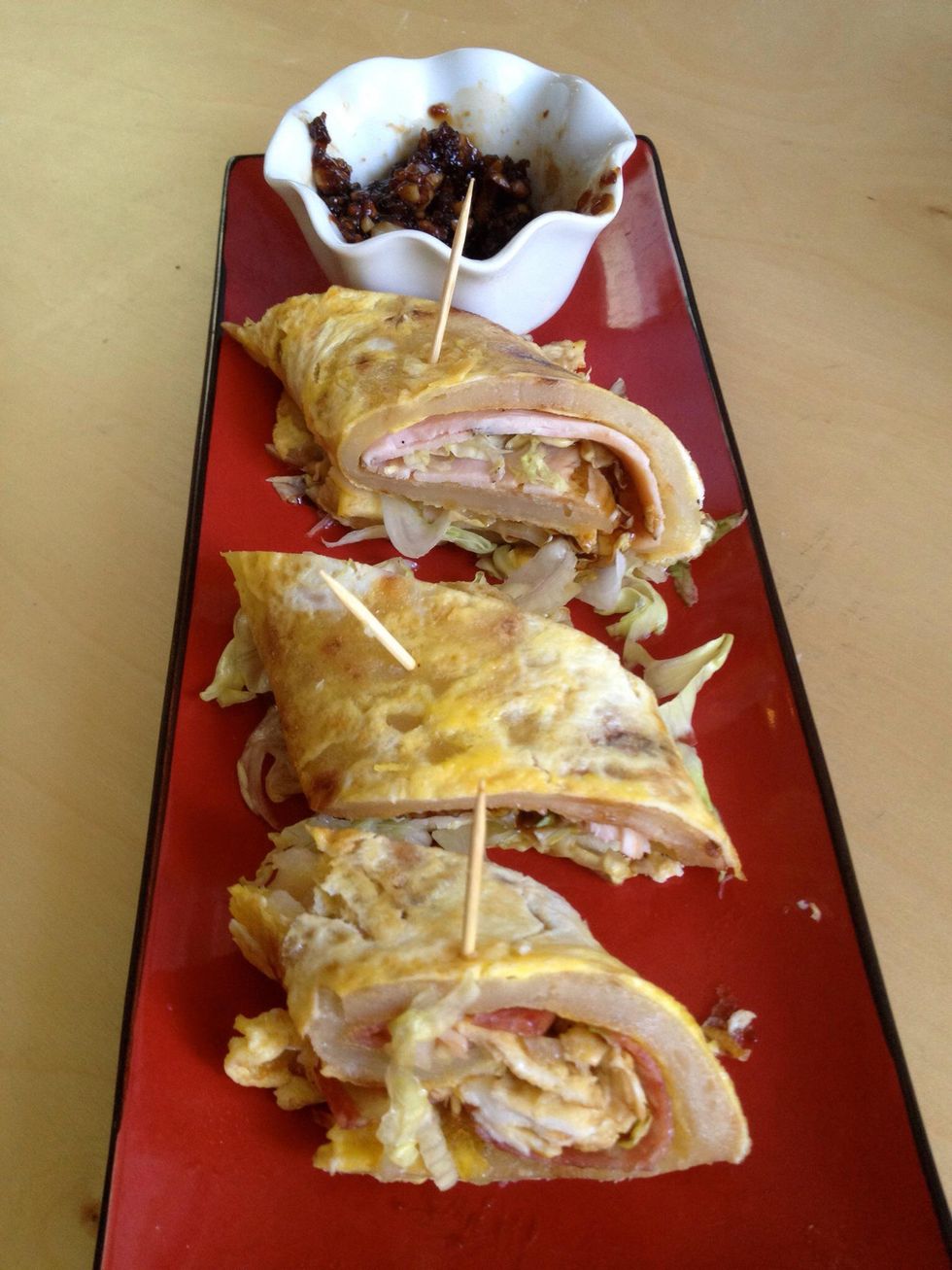 Cut into small piece and ready to serve this delicious Taiwanese breakfast.