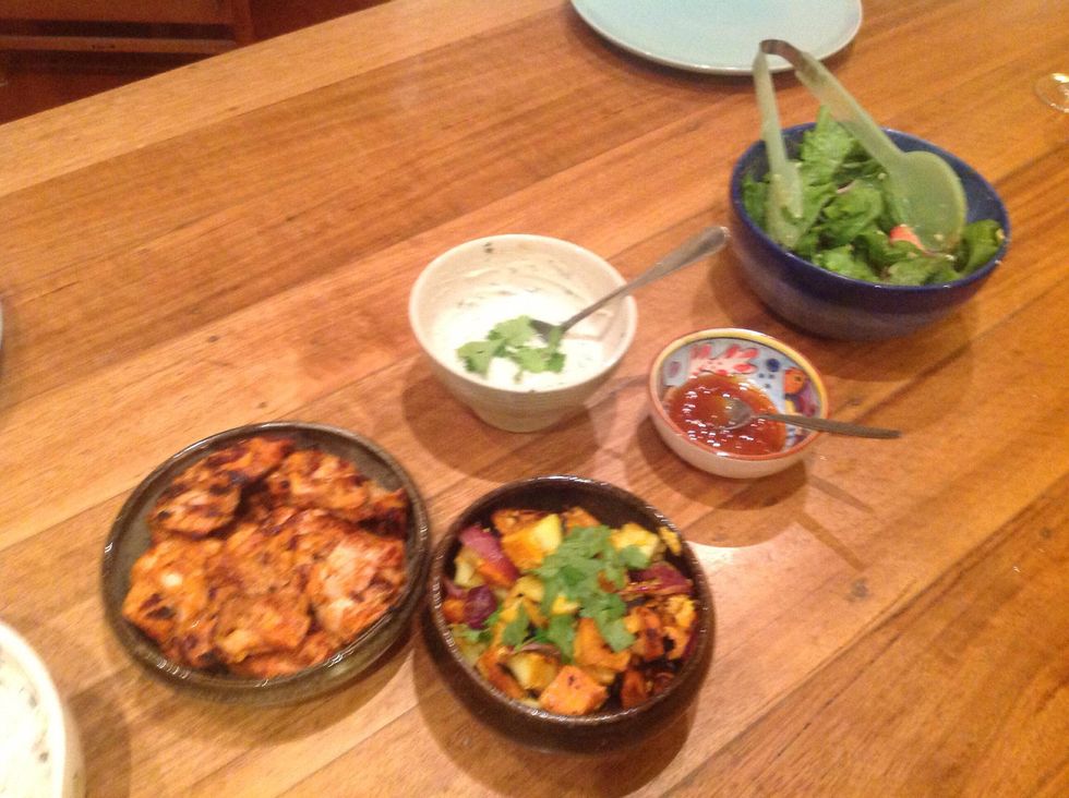 For a vegetarian alternative coat vegetables such as potato, sweet potato, onion and carrot in the same tandoori marinade