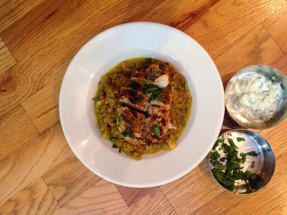 Slice chicken once cooked plate your meal and enjoy