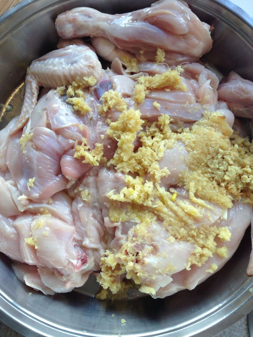 Ginger, pealed. Needs to be the same quantity as the garlic.