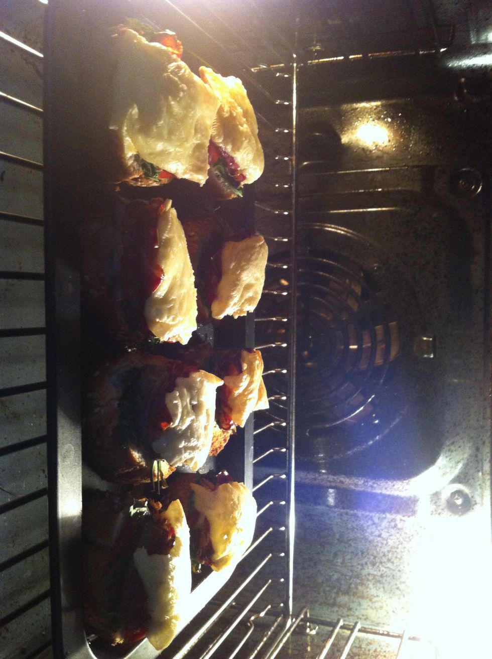 Cut the baguette and mushrooms, put a little butter on the bread and place in oven for 5 minutes , 200 CAdd arugula, tomatoes, mashrumsThen add some hamPlus cheeseAnd for 7-10 min with 200 C