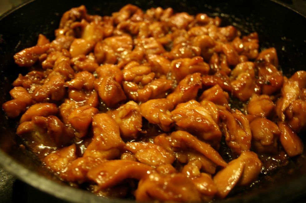 Let the chicken cook on medium heat until no pink remains. In a small saucepan, combine all other ingredients and cook on low heat. Let simmer, stirring often until sauce thickens and bubbles.