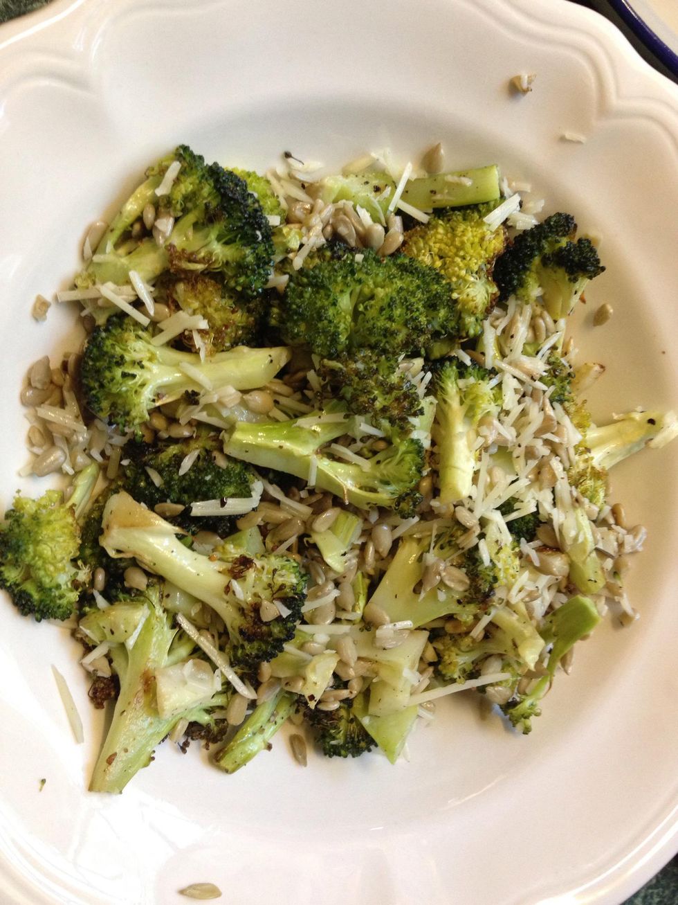 Toss with a handful of roasted sunflower seeds and a handful of Parmesan cheese.