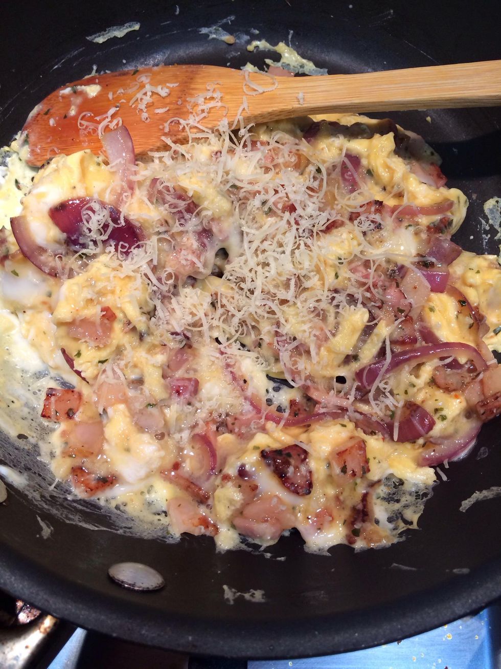 Scrape the sides and bottom carefully & if desired grate in some parmesan.