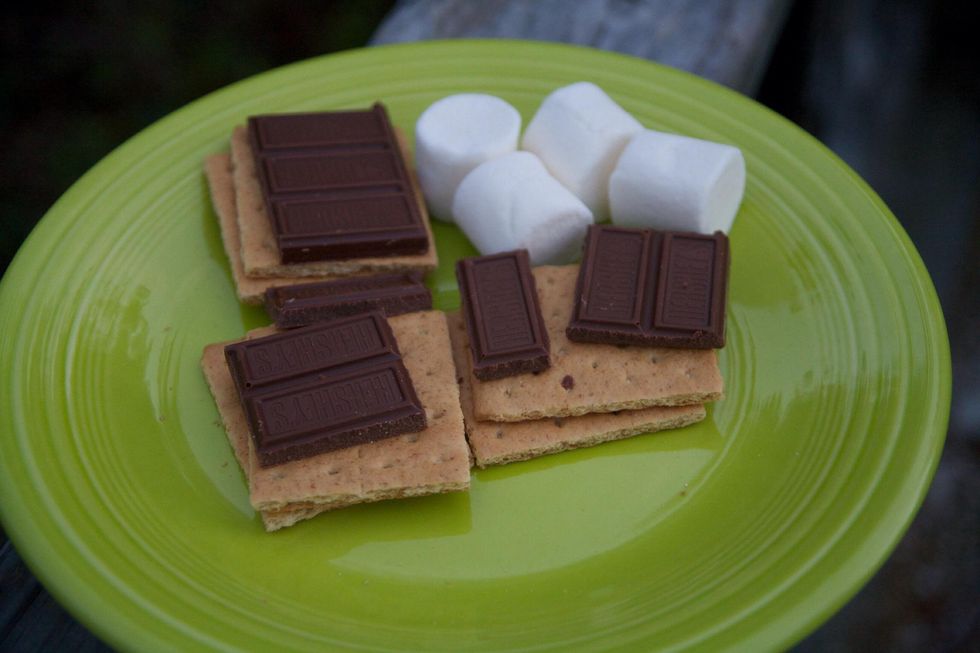 I use the graham cracker to push the marshmallows off the fork, then squish...