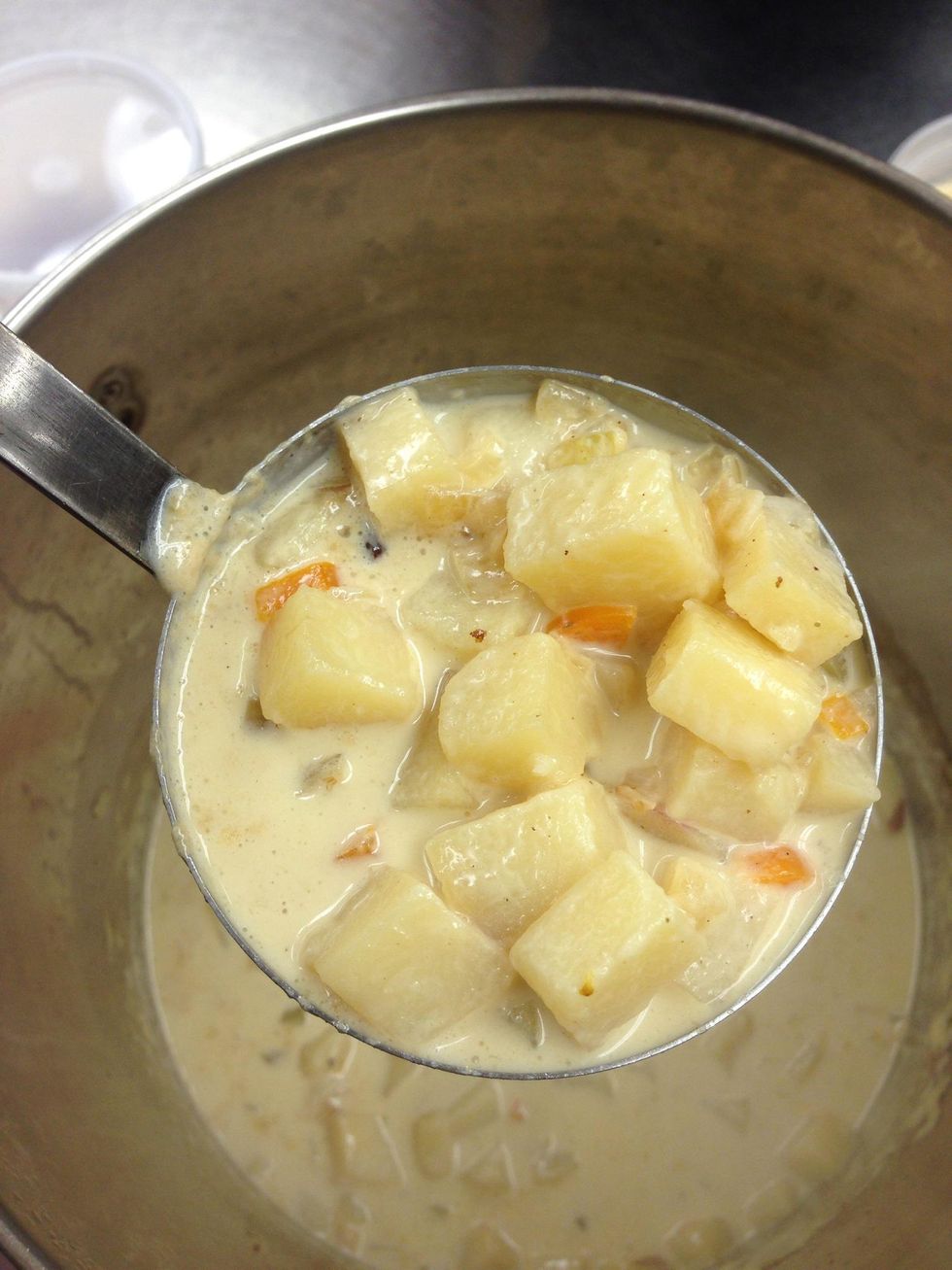 Once onions are soft add carrots and celery, cook for 3- 5 mins then add potatoes!!