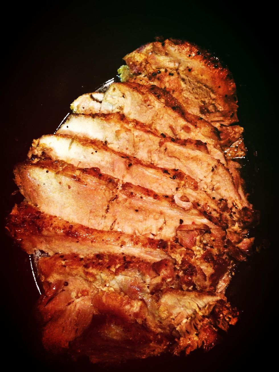 Season pork with pepper, red chilli flakes, onion powder, cayenne pepper, and olive oil (I use my misto spray can but you can also use a brush to add oil)