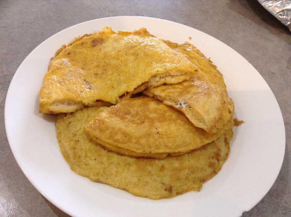 Ease around the edge of the omelette with a spatula, then fold it in half. When it started to turn golden brown underneath, remove from panos to a plate