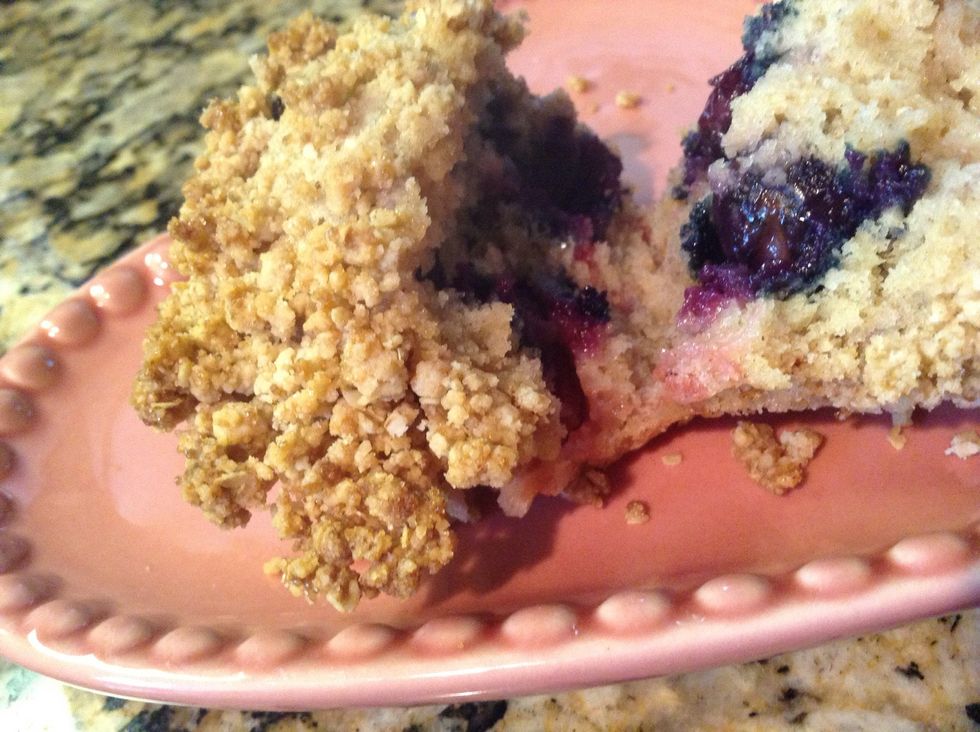 Big handfuls, top your muffins. I used all the topping on 32 muffins but this topping freezes well if you chose to do half and half. The topping is wonderful on apple crisp or any muffin