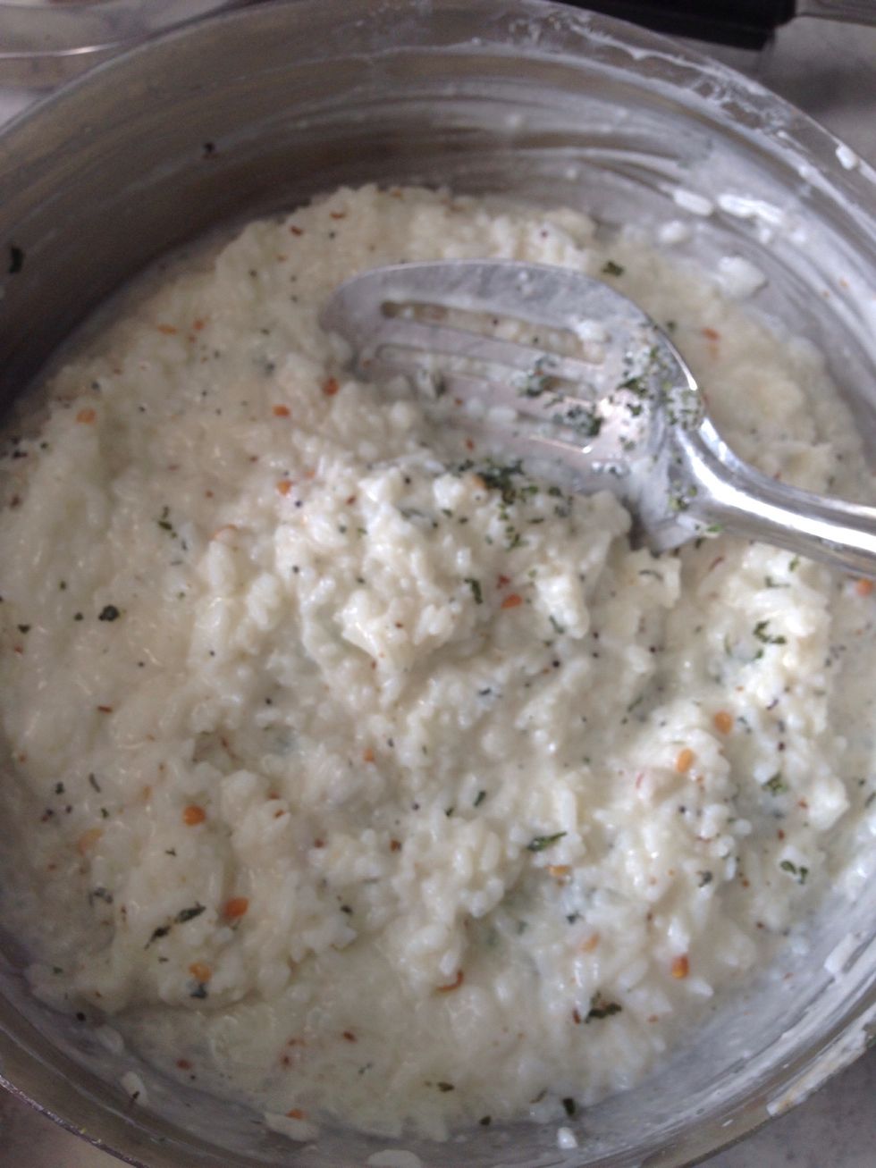Beat the curd until it's smoooth.. Better to use fresh curd so it's not really sour!!