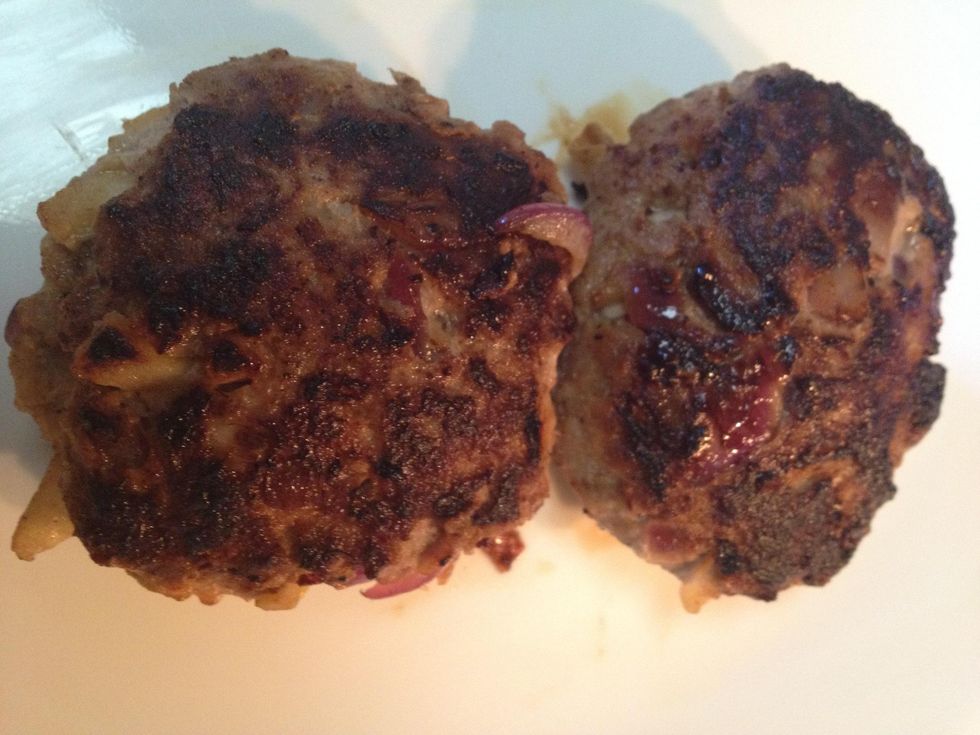 Make patties into any size you prefer grease a pan and cook for 3-4 mins on a low to medium flame as the meat cooks faster than the apples on high flame.