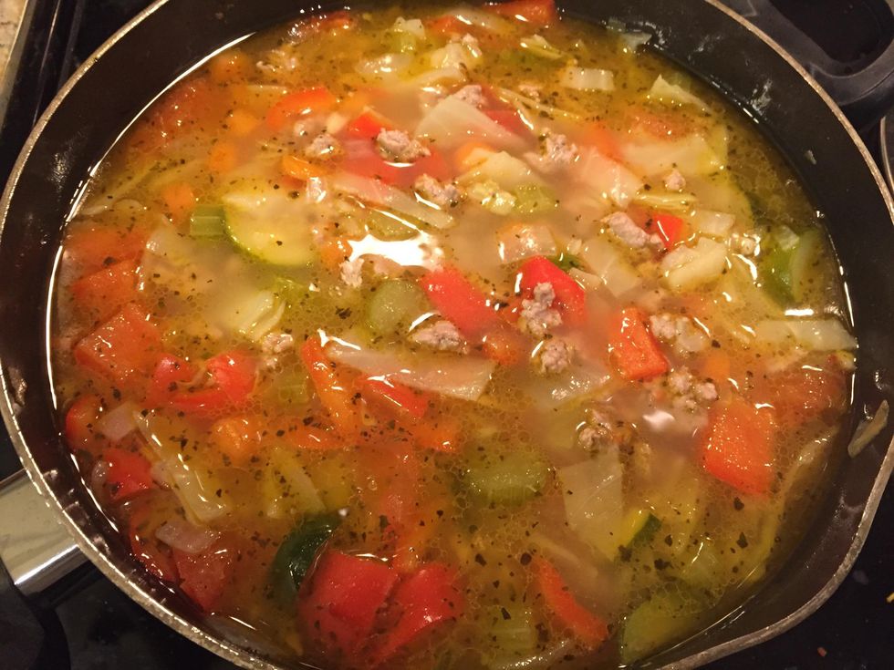 Chop up your red peppers, zucchini, and tomatoes while your cabbage and other veggies are softening and turkey is cooking...