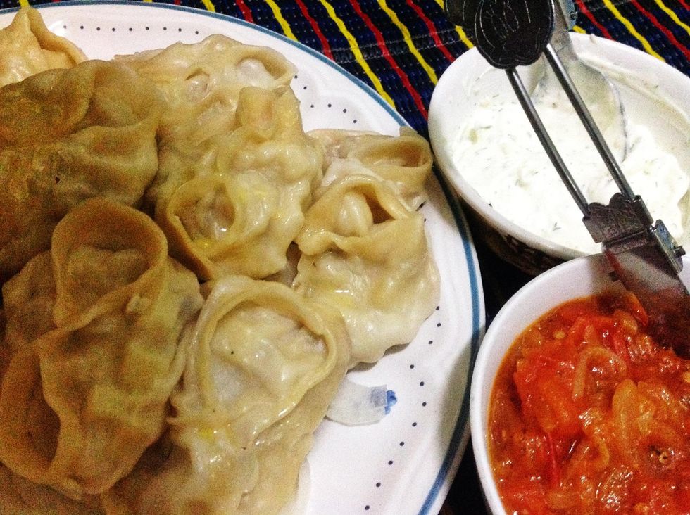 While dumplings being cooked you can prepare some easy tasty sauces. I use sour cream mixed with mayonnaise, add some crushed garlic, salt, dill and fresh coriander.
