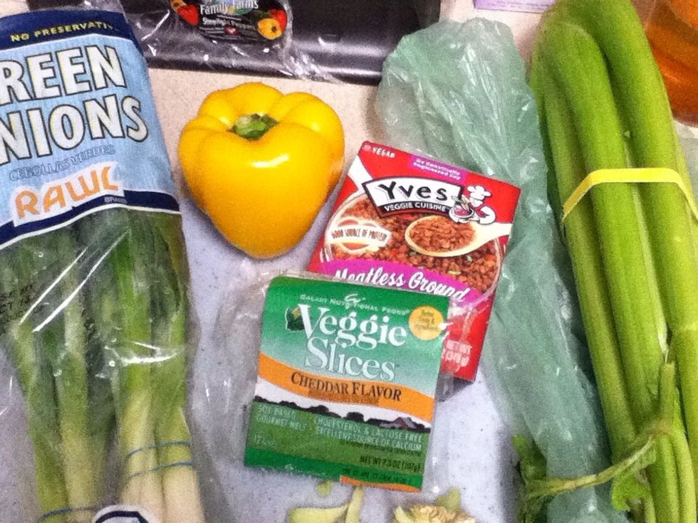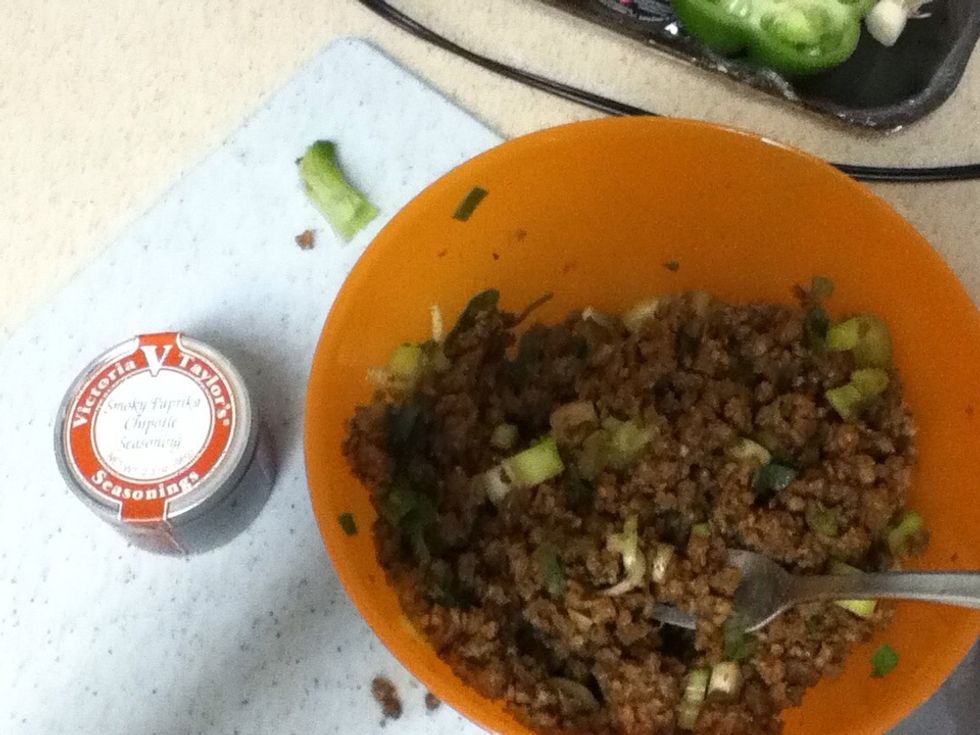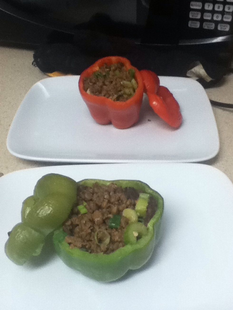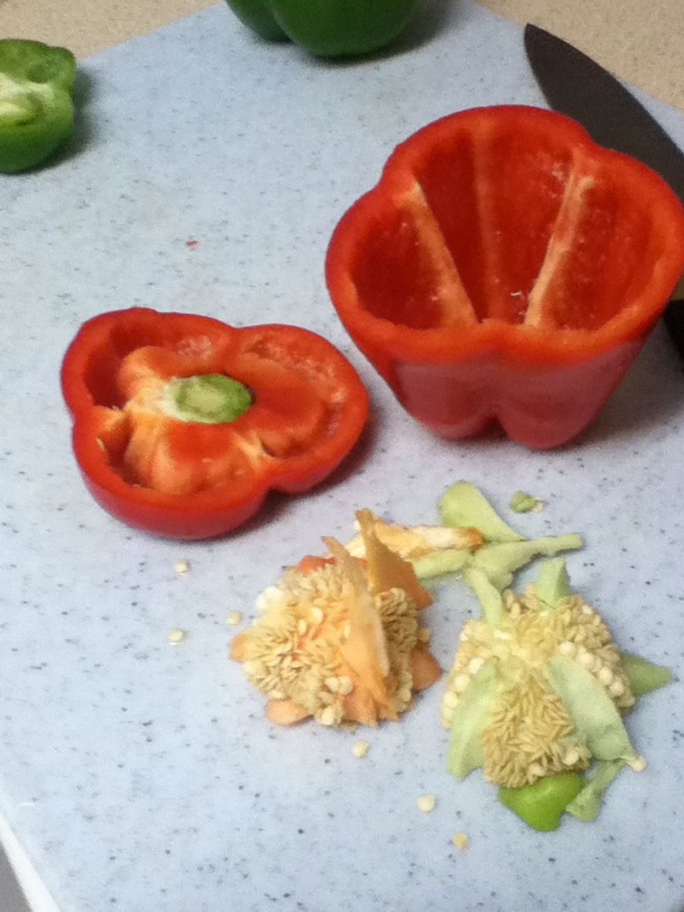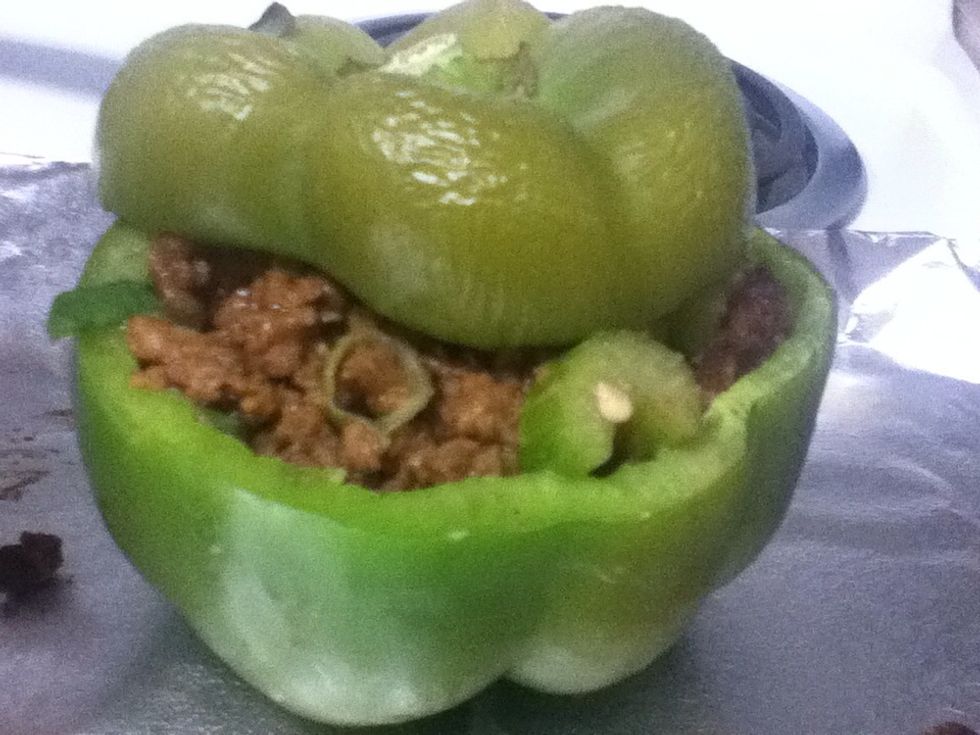 Put mix into a nicely oiled bell pepper and pop into the oven for 20 min. Longer if you like your pepper softer
