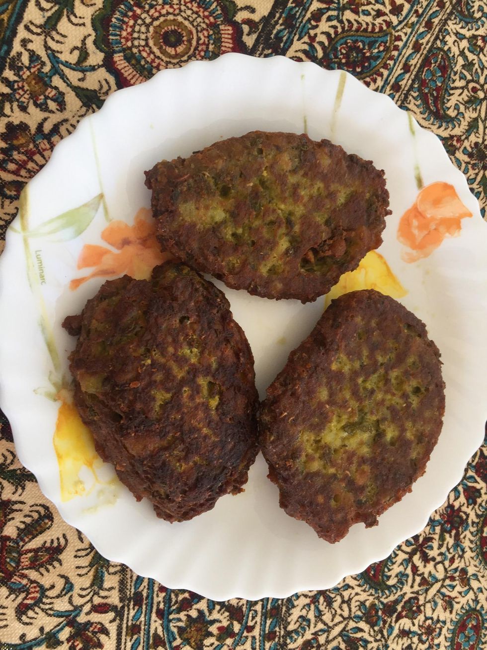 Heat the oil in frying pan. Using spoon and fry the patties.