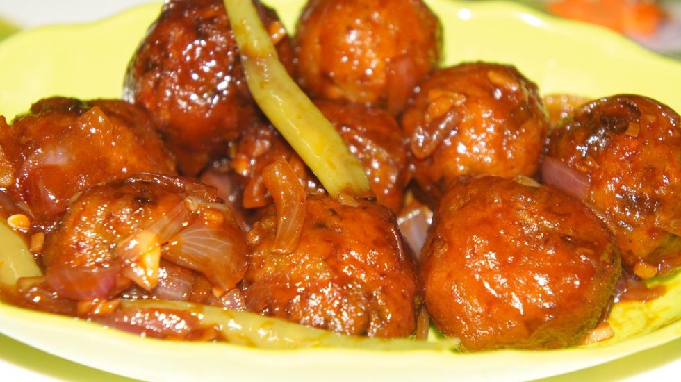 Then add deep fried veg balls to the garnishing sauce ...