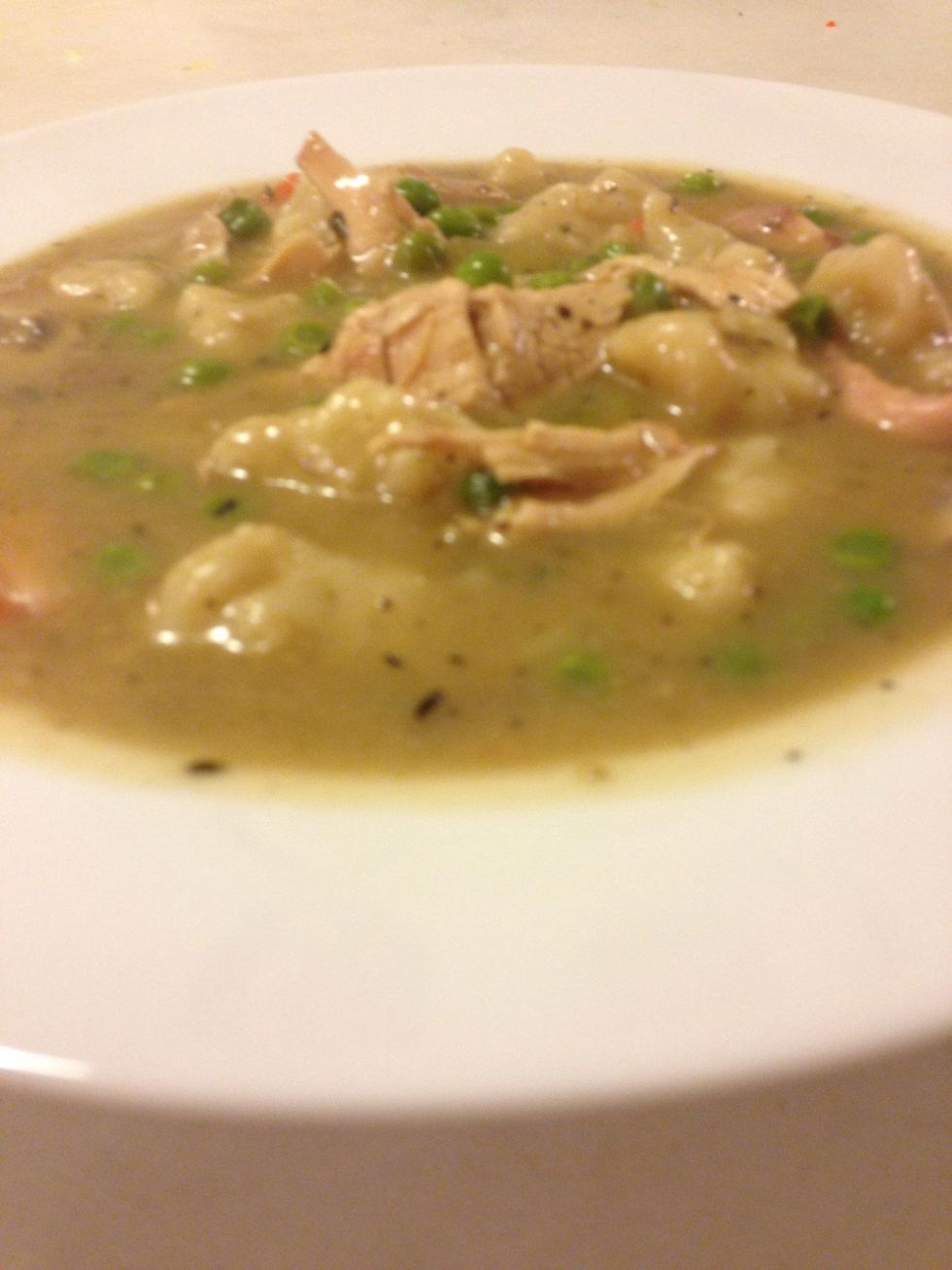 Like so! Added a little salt and you can even garnish your chicken and dumplings with it or eat it like a chip! Enjoy