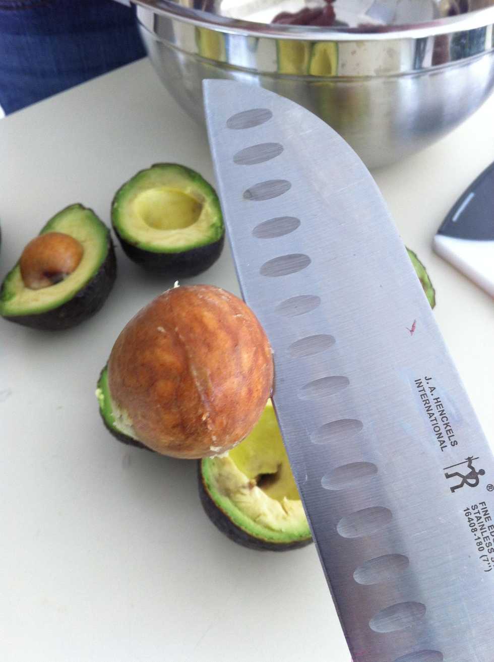 Once loosened, lift your knife and voila! Be careful, gripping the seed with your bare hands might cause injury, b/c the knife can slip, use paper towel to grip the seed and remove it from the knife.