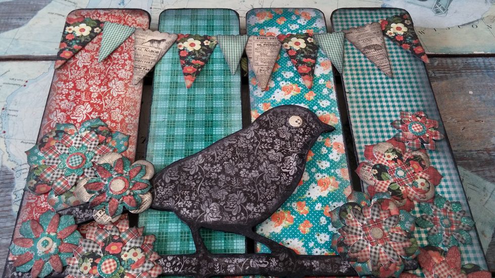 Use the sandpaper to clean up the edges. I also distress the paper a bit by sanding. This gives it a weathered look, which I really like.