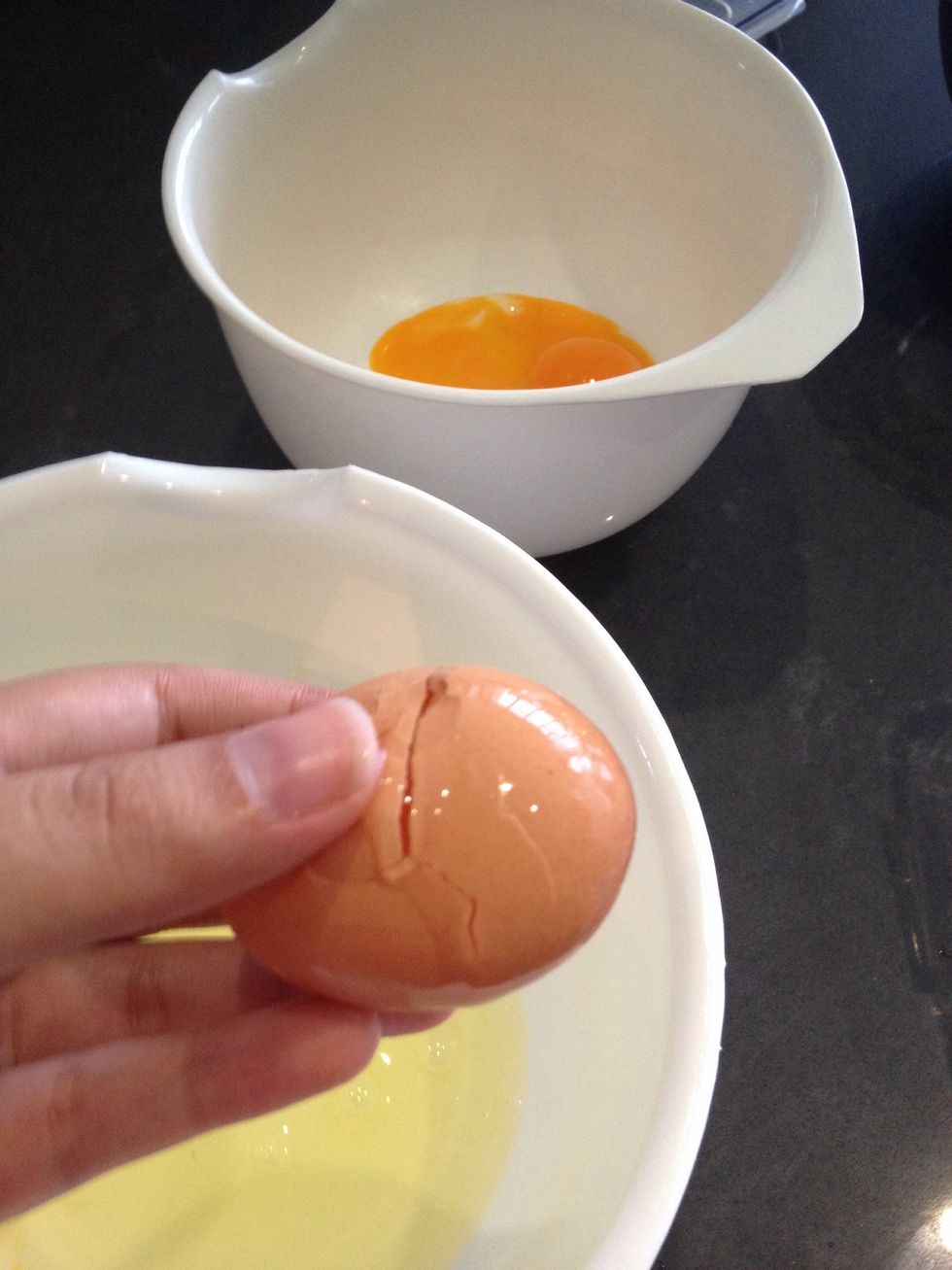 After cracking the egg let the egg white fall into a bowl and keep the yolk in one half.