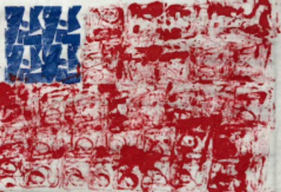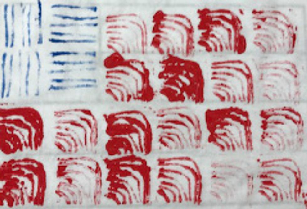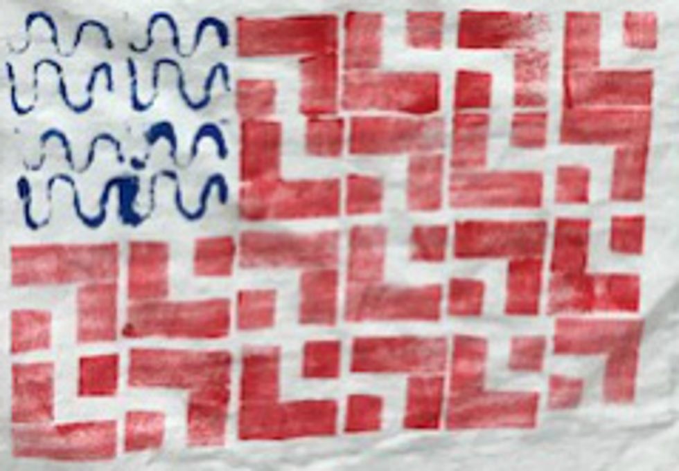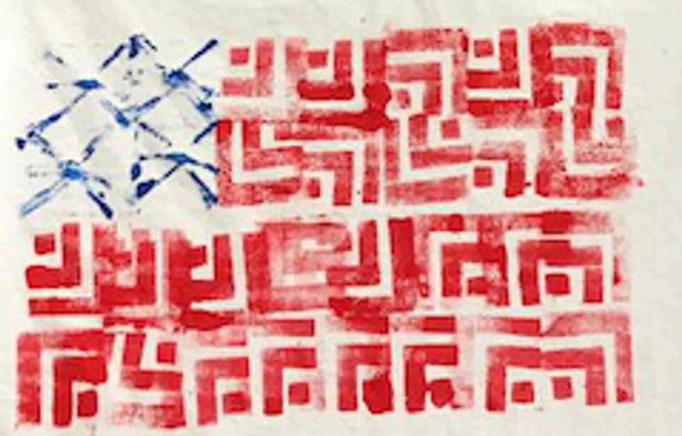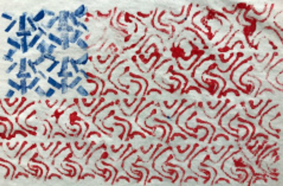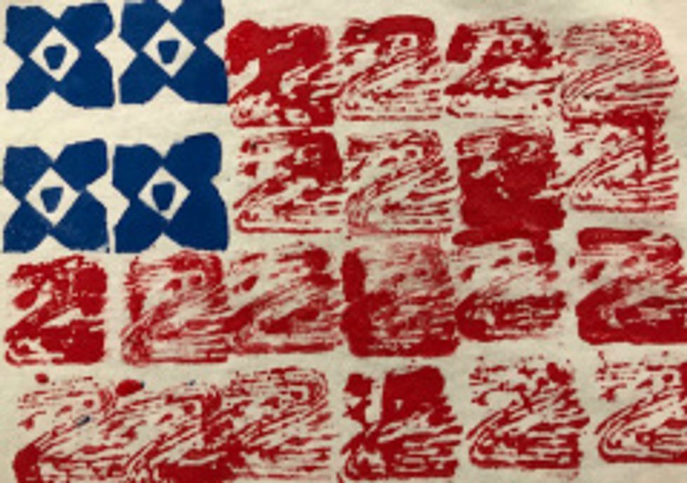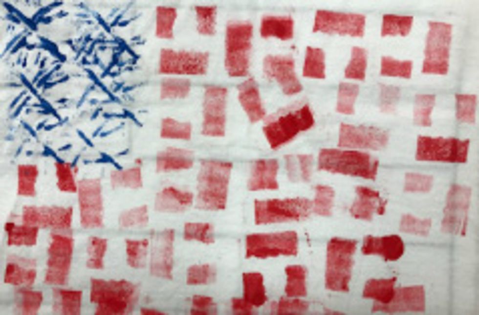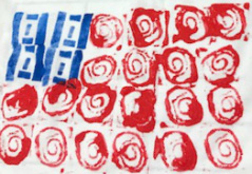 Align block as desired, press down and then lift off gently. You may stamp again for a lighter print, or add more paint for a darker print. Repeat with other design until the flag shape is complete.