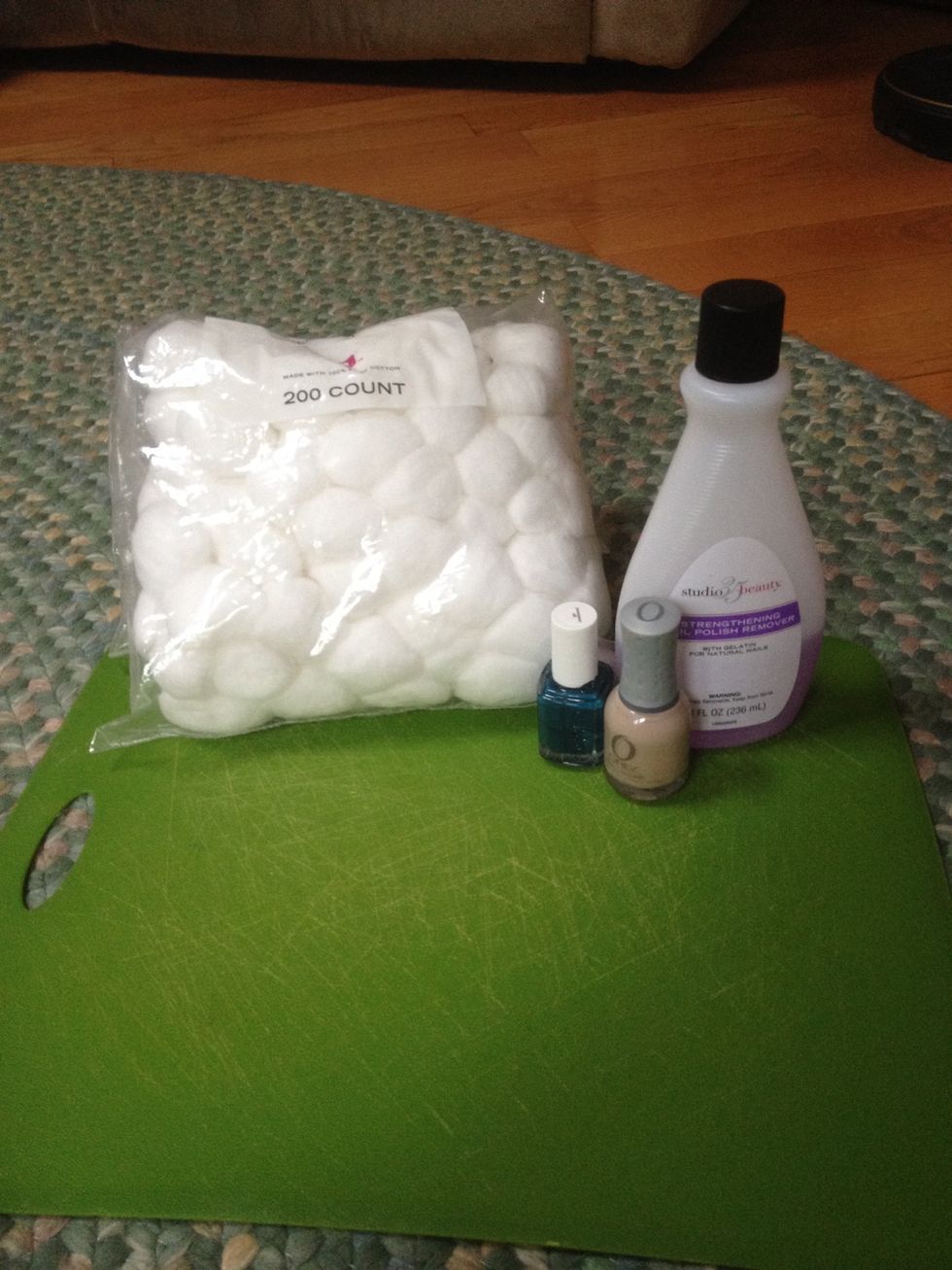 First your going to take your nail polish remover and a cotton ball then your going to take all the rest of your nail polish off