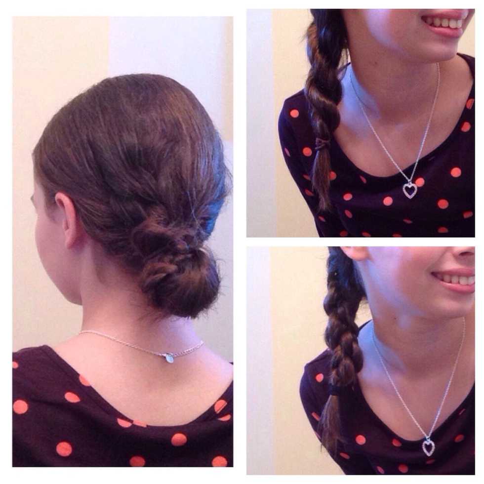 Lastly, twist both of the sections together, tie it, and finish off with some hairspray! I recommend this hairstyle for a bite to eat or shopping. This also looks cute with a scoop neck tee and jeans.