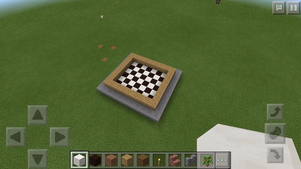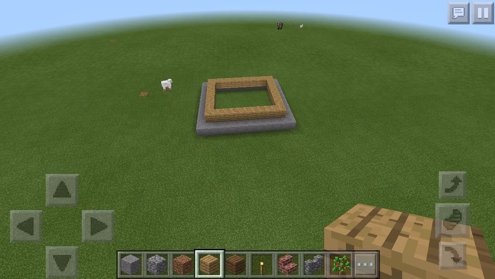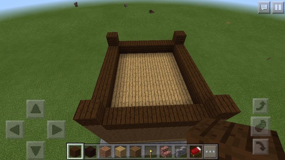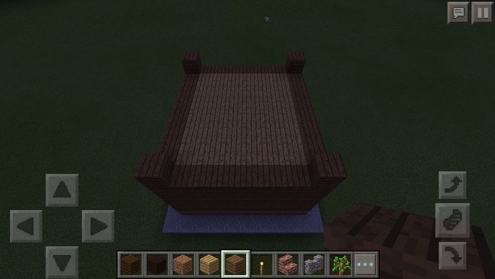 Then you put dark oak wood planks and put them inbeatween the foar blocks in each corner.
