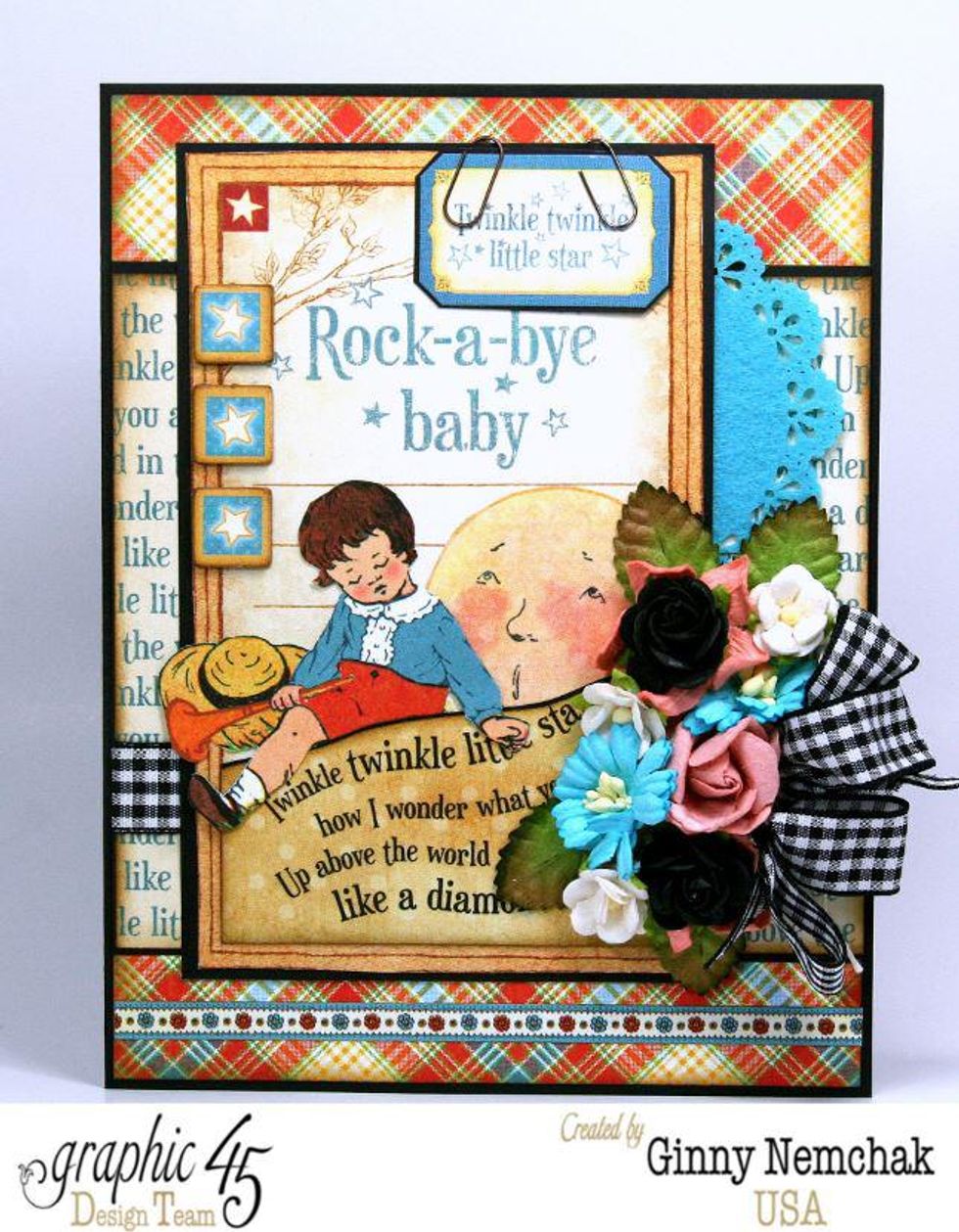 I used a fabulous selection of patterned papers from Graphic 45s Mother Goose line. I just love the bright colors and graphic shapes!