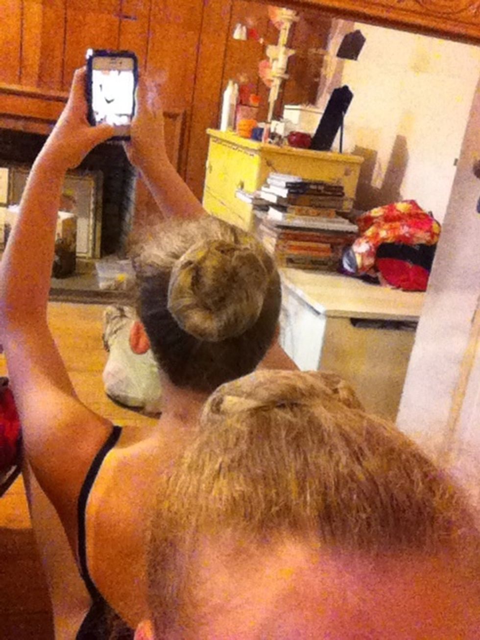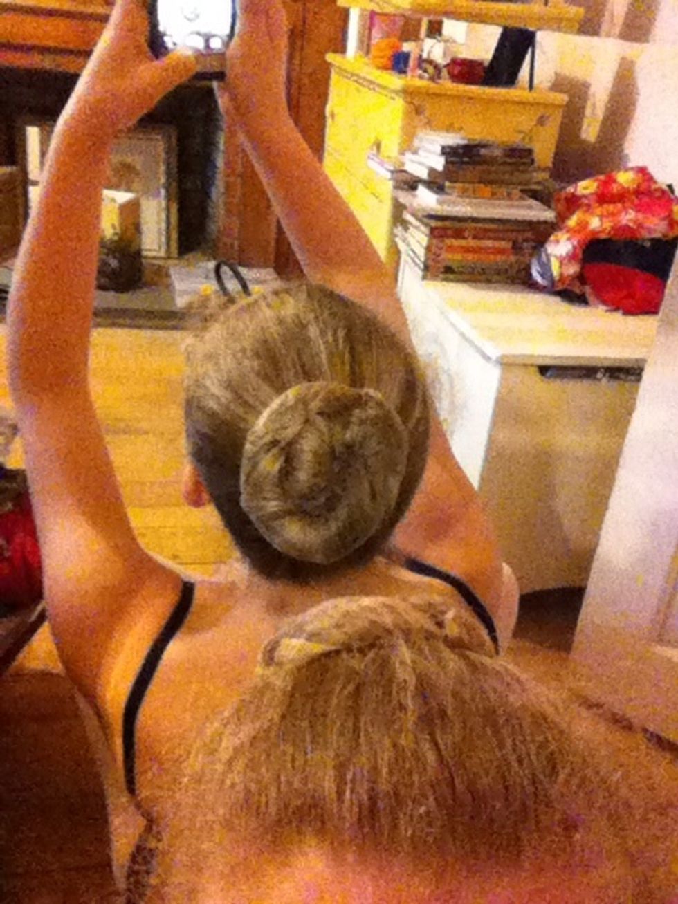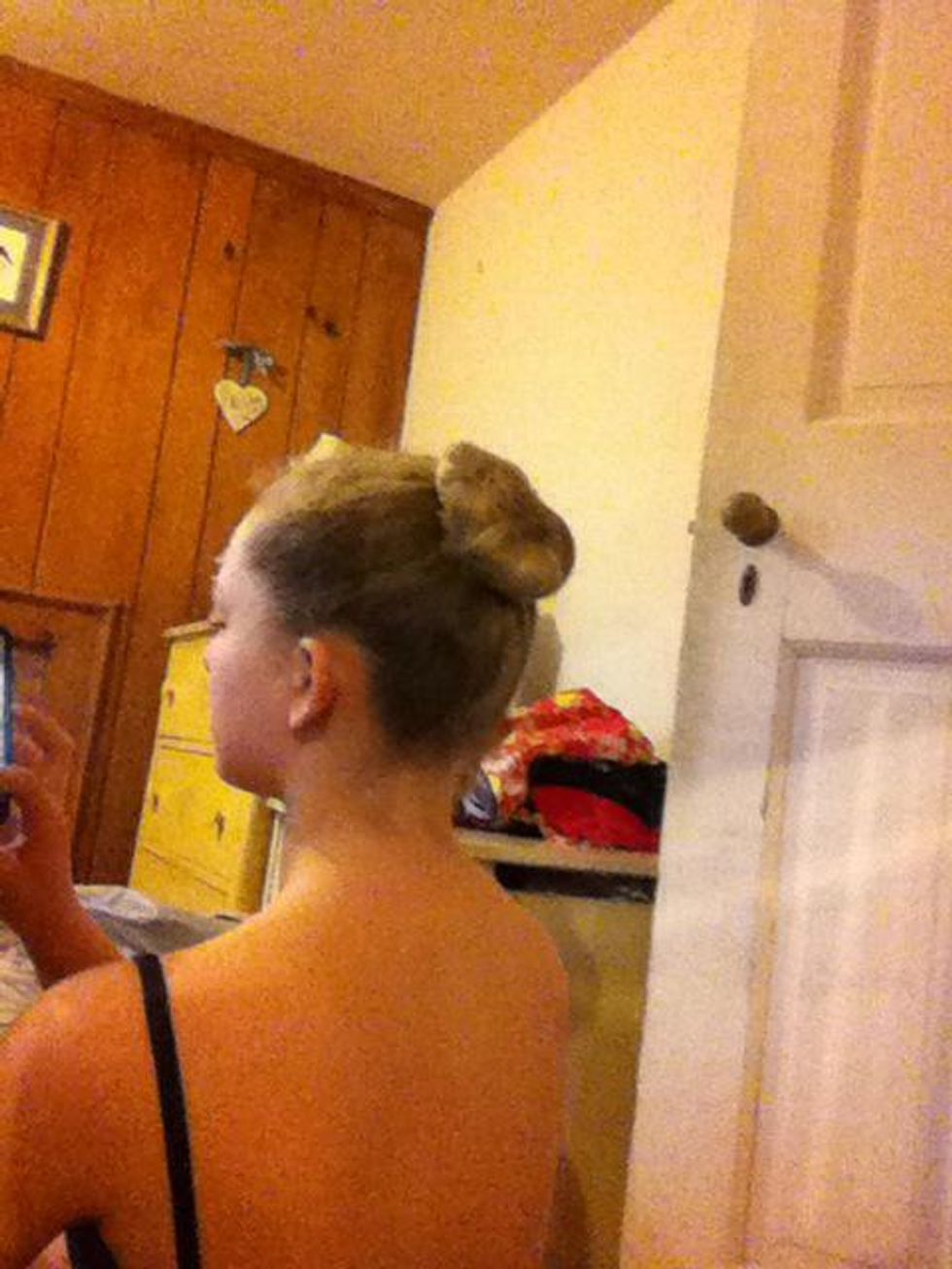 Twist one part of your hair and wrap it around your pony tail putting two bobby pins in to hold it up