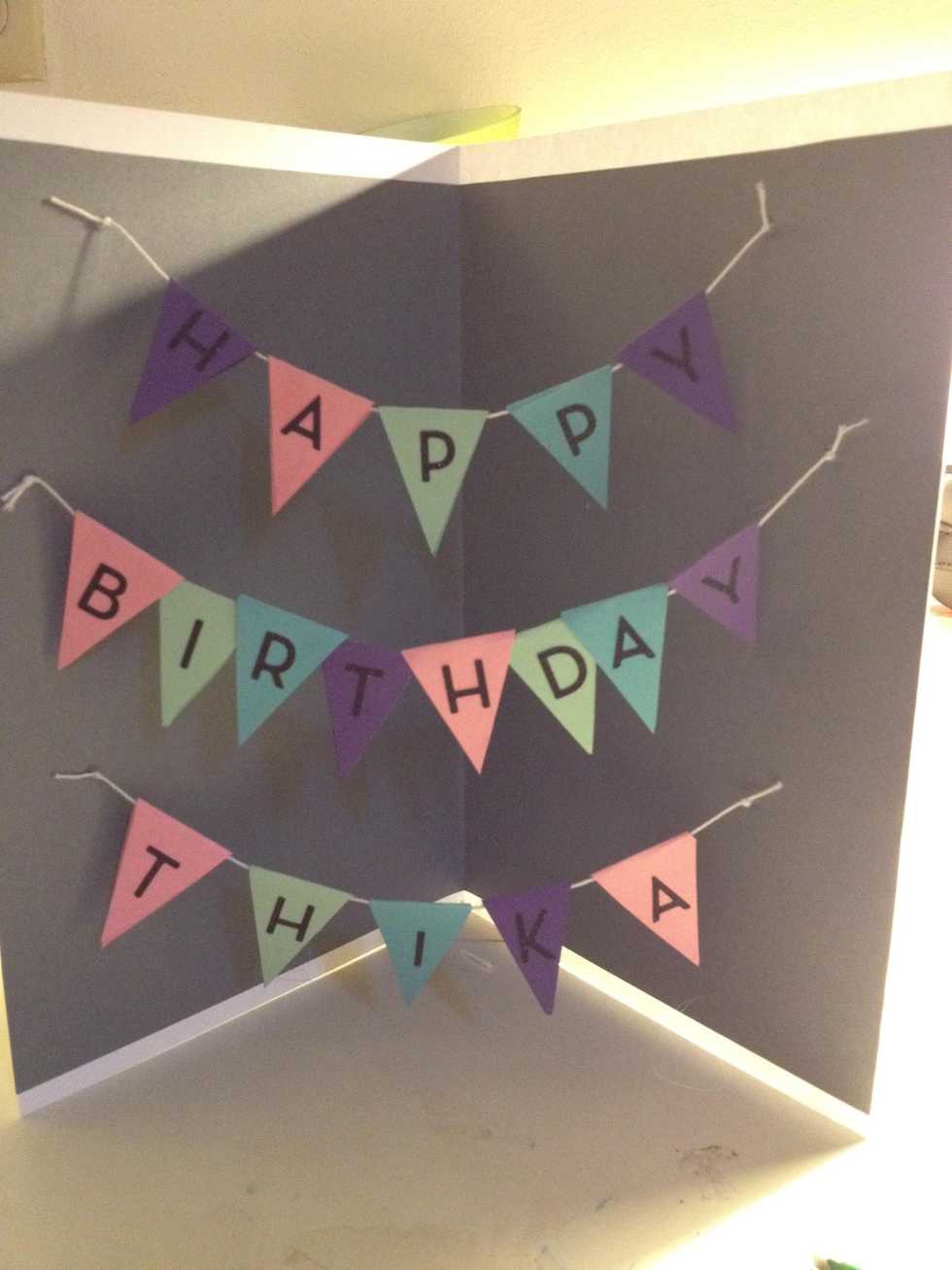 count out letters to be used in banner and select paper colors. (example : h-a-p-p-y = 5)