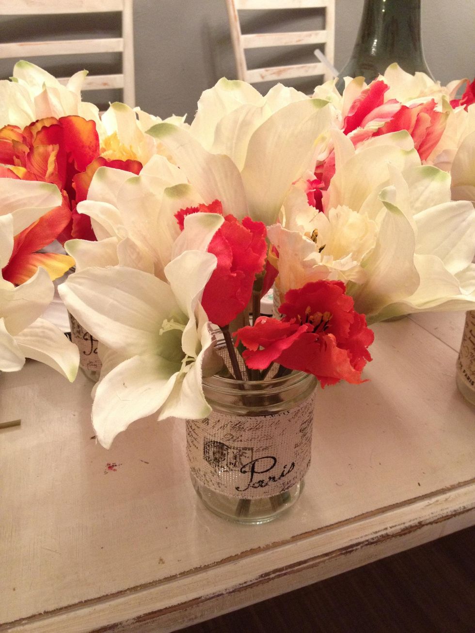 You can make a nice floral arrangement using fake flowers and mason jars that costs pennies versus one you can buy at TJ Maxx for $12 each. And it can dress up a table, bathroom, wedding, or a party.