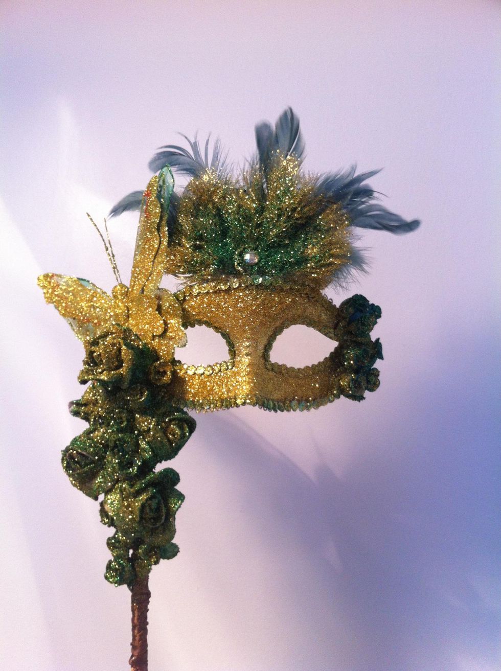 I next glued the butterfly to the side of the mask.
