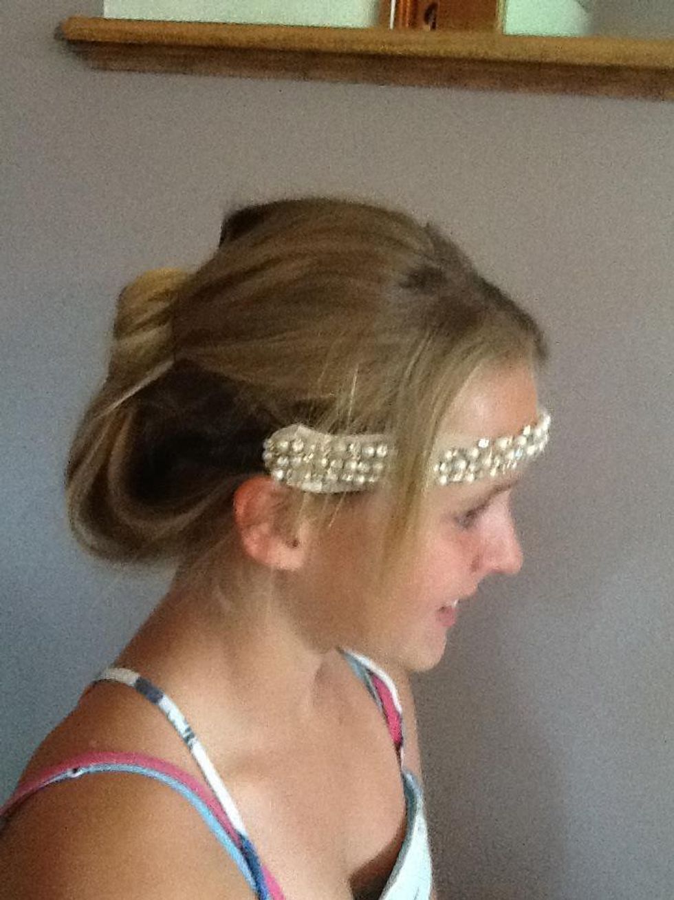 Section the top of your hairFlip it ovaApply your head band onto your foreheadThen flip your hair ova againThen bobby pin into a bunDone!(:(: Abby(: