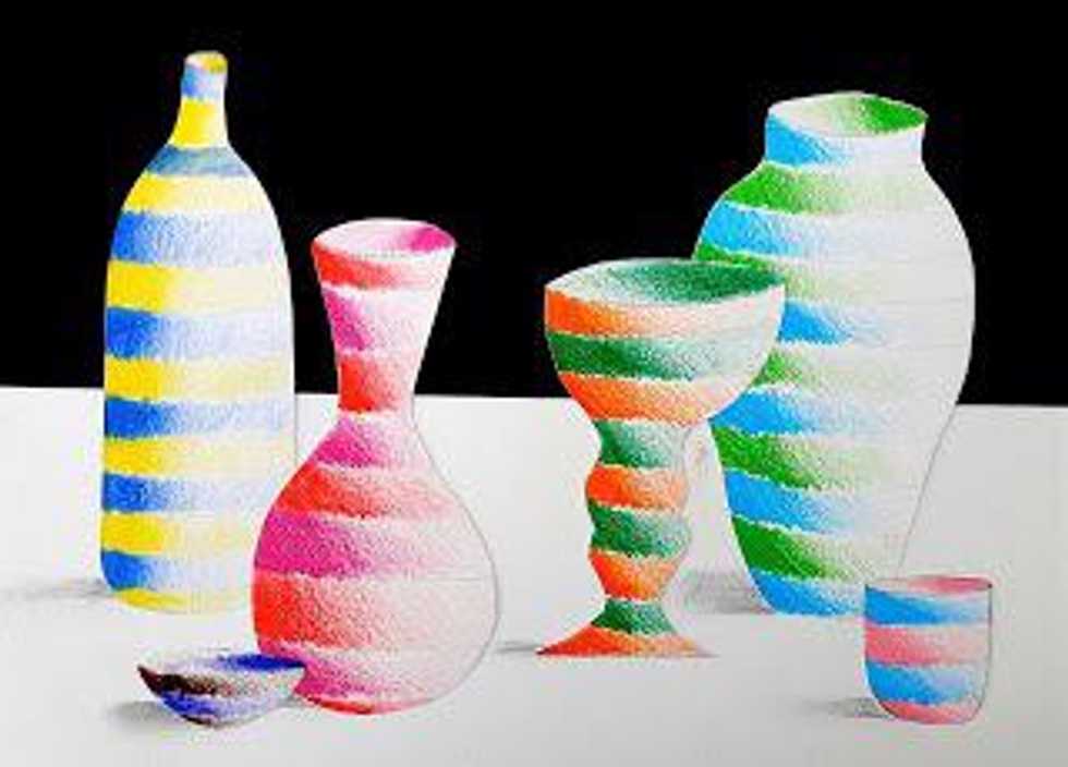 Draw 5 or more bottles or vases. Use a line of symmetry to help make sides even.