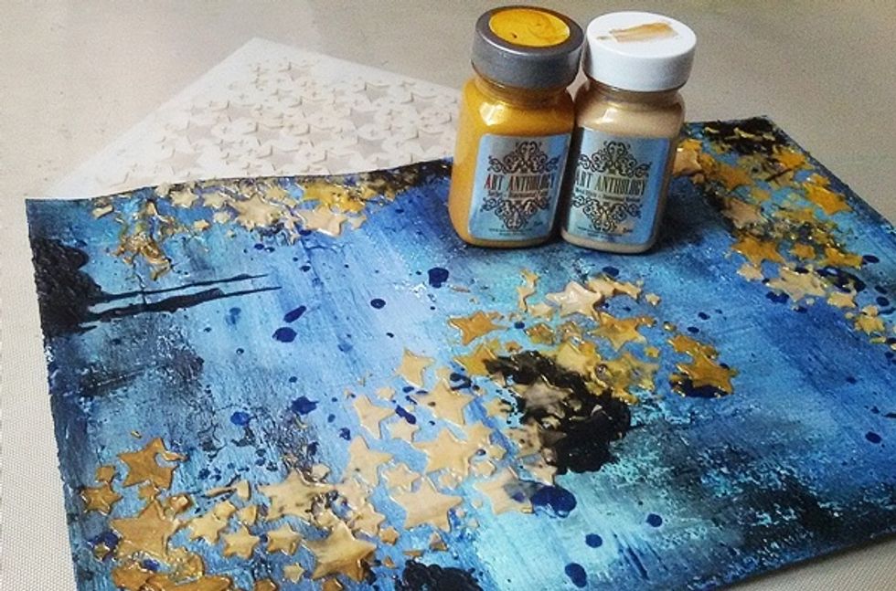 Start with white paper. I like watercolor paper ;) Just apply Stucco randomly.