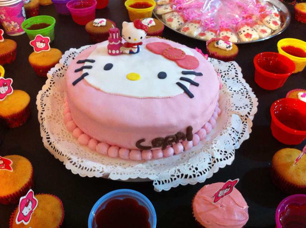 Luego de cubrir con masa elástica la torta. Hice la cara de hello kitty.