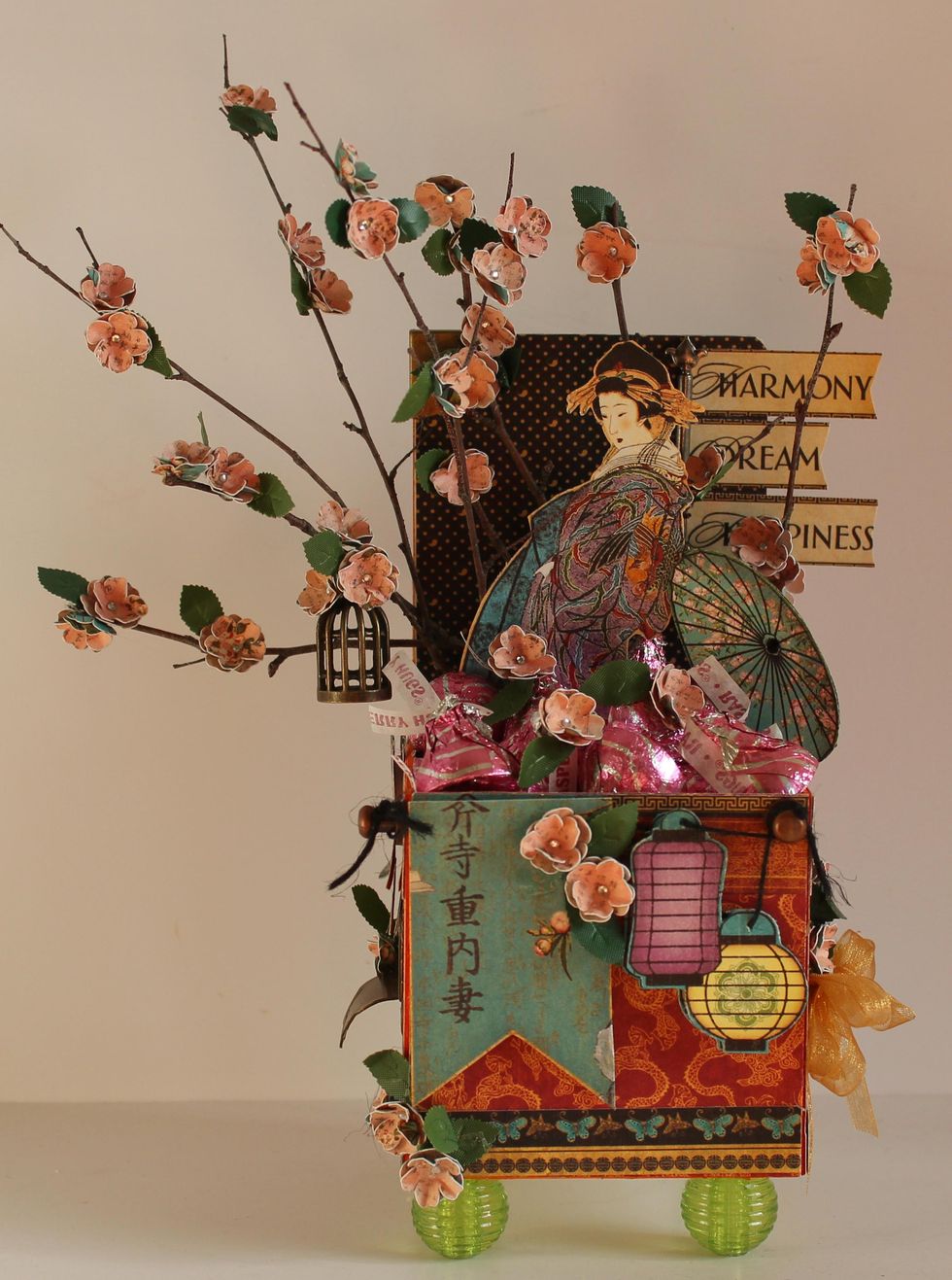 Add Candy, scatter a few blossoms on top...Adhere blossoms to twigs