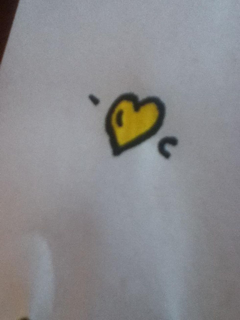 What u will need I used a yellow markerDraw your shape I drew a heartOutline in blackDraw a little black dashThis is what it should look like