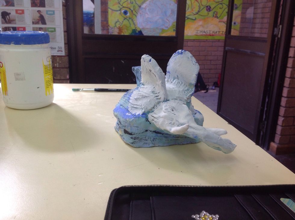 Now it is ready for the kiln. When you get it back out it is ready to paint, paint it with under glaze and then do the over glaze.
