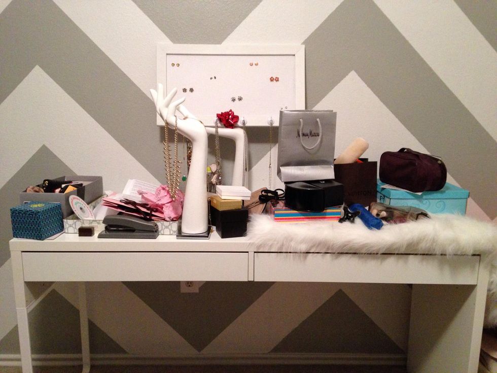 We need to determine how wide the chevron stripes will be according to the size of your wall. For my wall, each stripe was 4ft wide.