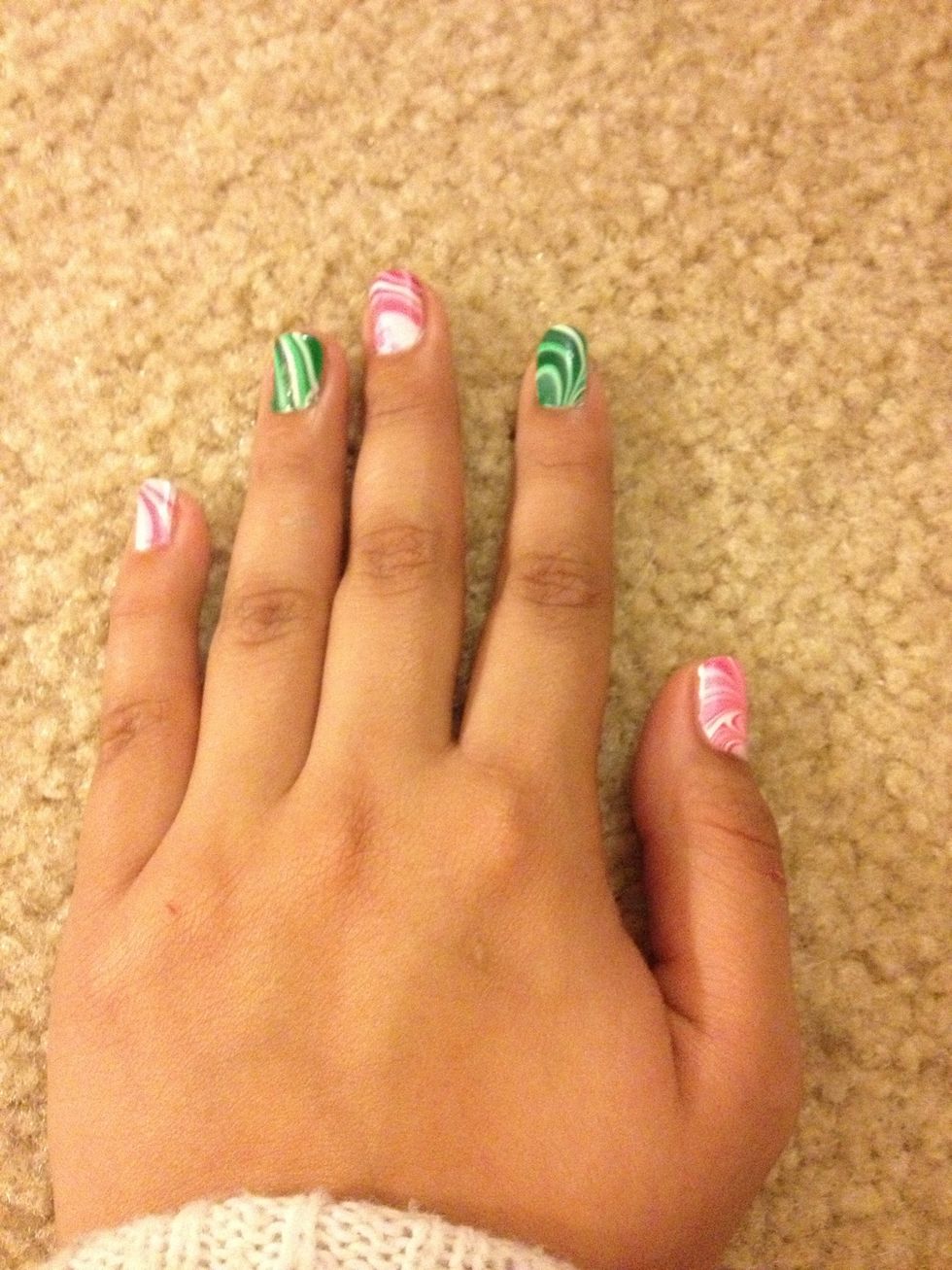 I am using Nabi nail polish. I'm using dark green , margenta, and white to create a christmas feeling :)
