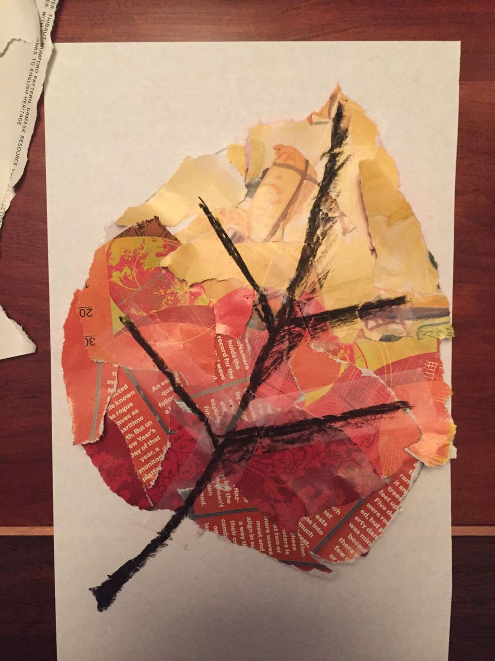 Use a black oil pastel to redraw your stem and veins. Congratulations! You created a collage!