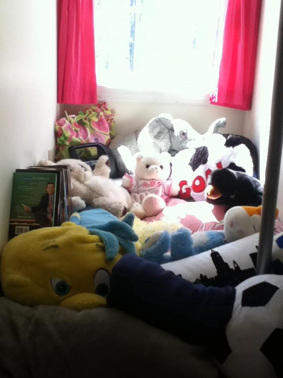 Add some large, stuffed animals. Most of my stuffed animals have meaning to me- they were mine when I was young.