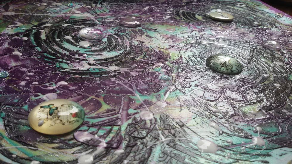 More textures with Hurricane stencil and Black Leather Jacket velvet.