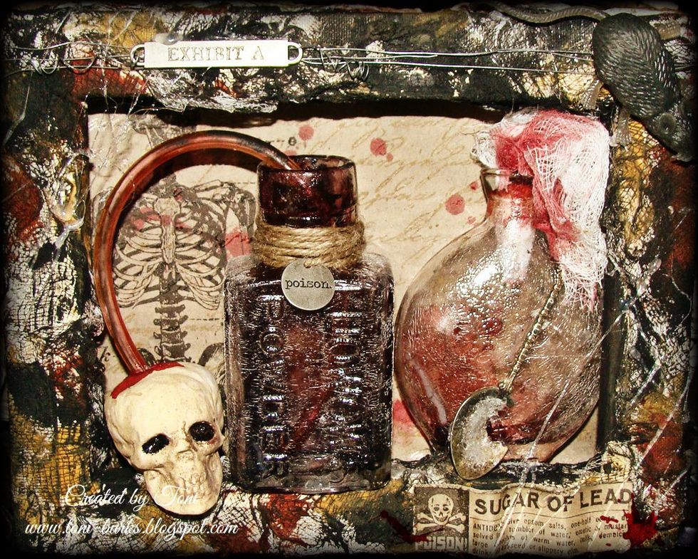 The "Sugar Of Lead" label is also from Tim Holtz Paper Stash Halloween collection. Distress the edges and apply Distress Ink in Black Soot for depth.