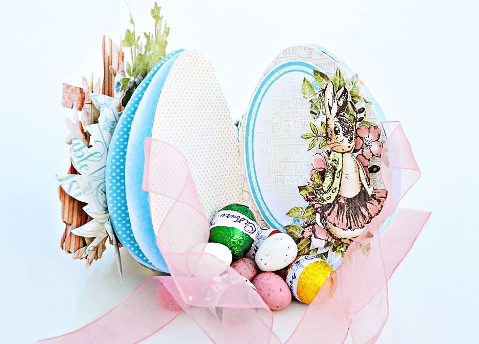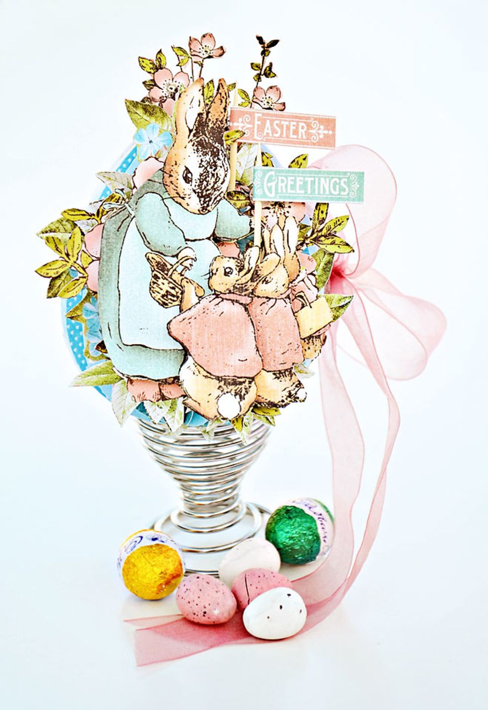 Add the bunnies from the Graphic 45 Once Upon A Springtime collection paper and the front of your egg is complete.