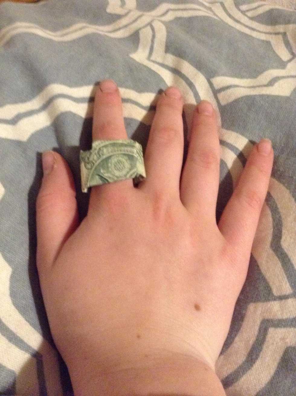 Just a dollar iron If necessaryFold hot dog styleThen unfold and cabinet fold both sidesFold together make sure you crease wellFold in both endsFold smallerFold like so and put the other end in the lager side✋💍💍💵💵