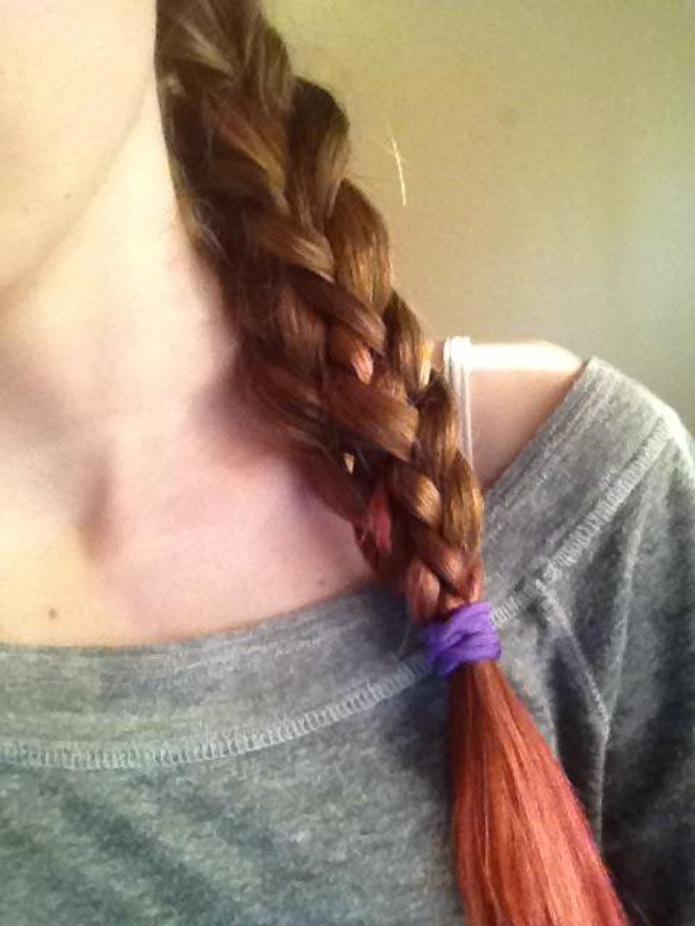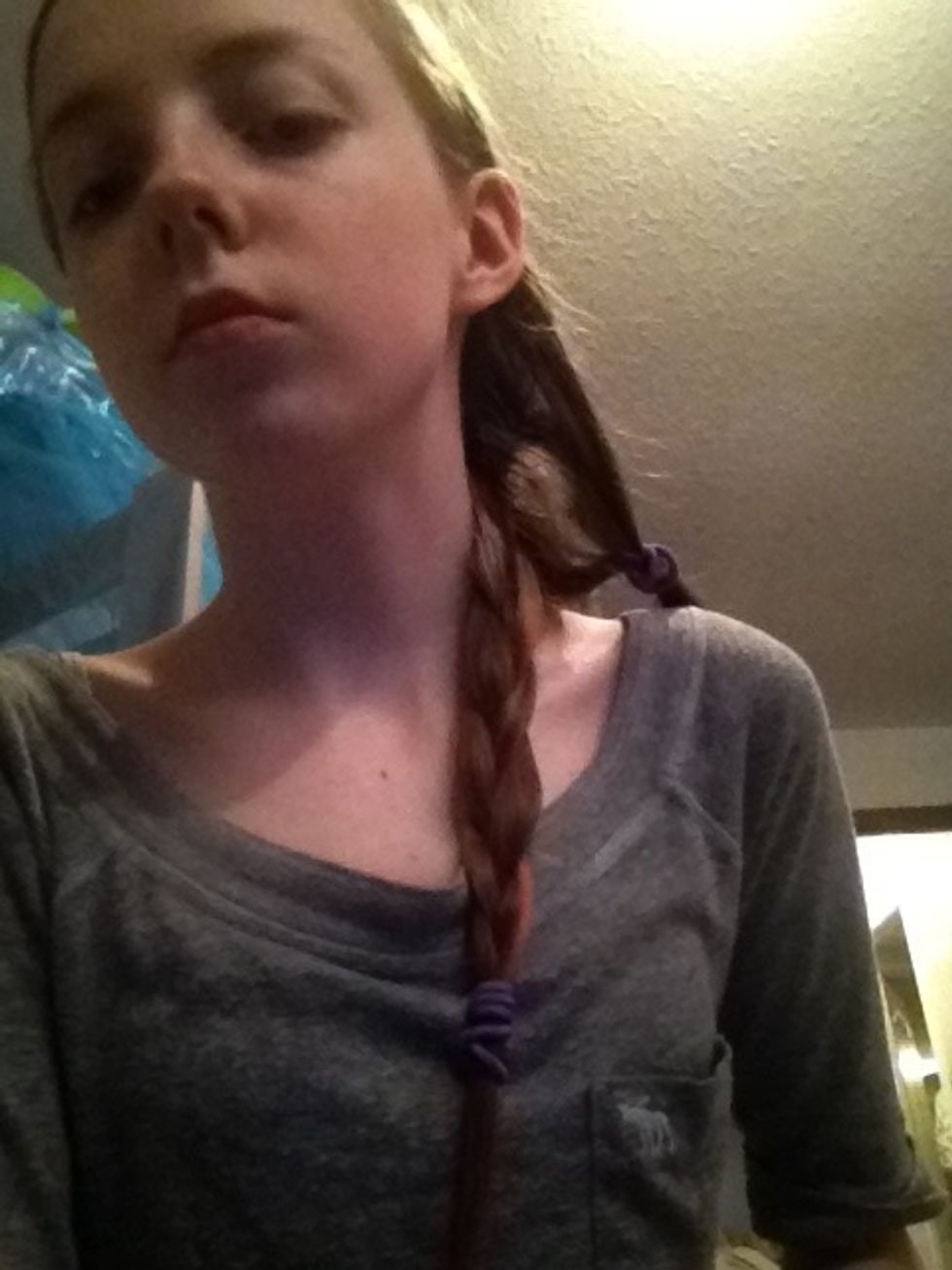 Pull out other ties and secure the whole braid. *NOTE: it's important to make sure you braid loosely because if you don't then it will be very difficult to lace the small section through.*